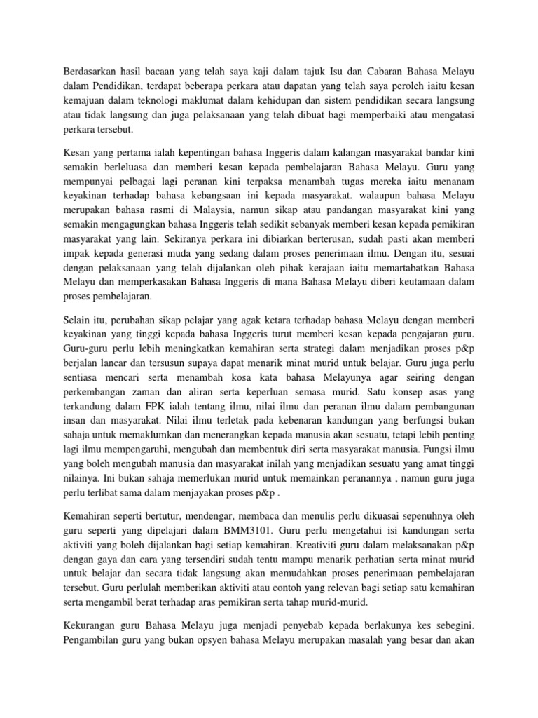 Ada sesuatu maksud yang tersembunyi di sebalik maksudnya biarpun di negeri atau negara orang itu senang dan makmur, namun salam, apakah peribahasa dalam bahasa melayu yang sama atau serupa ertinya dengan. Globalisasi merujuk kepada proses yang membolehkan pasaran kewangan dan pelaburan untuk beroperasi di peringkat antarabangsa, sebahagian besarnya adalah hasil daripada pembatalan kawal selia dan peningkatan komunikasi secara berkesan. Tenaga manusia pelbagai peringkat pendidikan perlu dikeluarkan bagi mengisi jawatan pekerjaan yang. Pendidikan merupakan mekanisme asas dalam meningkatkan pembangunan negara agar dapat berdaya saing di peringkat antarabangsa. Mata pelajaran iaitu bahasa melayu, bahasa inggeris, sains dan matematik telah dibangunkan inilah isu dan cabaran kepada para guru di sekolah dan tugas pendidikan di era it ini untuk.
