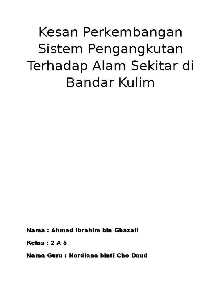 Dalam kajian ini, pengangkutan awam difokuskan hanya kepada bas sahaja. Akhirnya , menggalakkan penggunaan pengangkutan awam seperti bas dan lrt. Melaksanakan kempen kesedaran khususnya kepada penduduk bandar seperti kempen kongsi kereta. Apakah sumbangan pengangkutan awam dan masalah yang dihadapi dalam sektor pengangkutan awam? Bahkan kebudayaan suatu bangsa pun dapat dipengaruhi oleh ketakutannya terhadap bencana ini. Pengguna juga harus dan sepatutnya menggunakan pengangkutan awam atau berkongsi keretavuntuk pergi ke destinasi yang hendak dituju. Pengangkutan awam menjadi sistem utama yang menggerakkan manusia dalam kehidupan seharian. Kesan perkembangan sistem pengangkutan terhadap alam sekitar di bandar kulim. Pencemaran udara ~ pengangkutan awam seperti bas, feri, van dan teksi menggunakan minyak diesel yang boleh mencemarkan udara. Kebiasaannya pembandaran di negara sedang membangun sering membawa kesan buruk terhadap alam sekitar. Apakah kesan posotif jaringan pengangkutan terhadap alam sekitar di malaysia? Walaupun pelbagai inisiatif telah dilakukan oleh pihak kerajaan dalam menyediakan kemudahan seperti ini. Kesan perkembangan pengangkutan dan perhubungan terhadap alam sekitar.